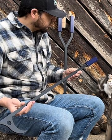 2-PIECE FIRE POKER SET: This fire poker set include a 40inch Fire Poker and a 40 inch Log Grabber for fire pit. Help you hook, rake, and push firewood easily when you enjoy your campfire